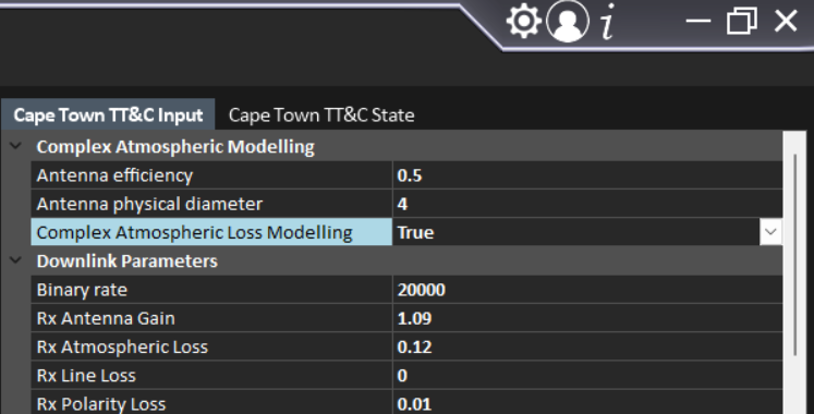 As can be noted above, modelling atmospheric attenuation as a static variable is a simplification that prevents detailed link budget analysis. As these calculations create additional programmatic overhead, its left as a toggleable feature. To enable complex atmospheric modelling, an input must be set in the GroundstationTransceiver model as seen in Figure 5. Note that complex atmospheric loss modelling is only applicable to signals travelling in the space -> Earth direction.