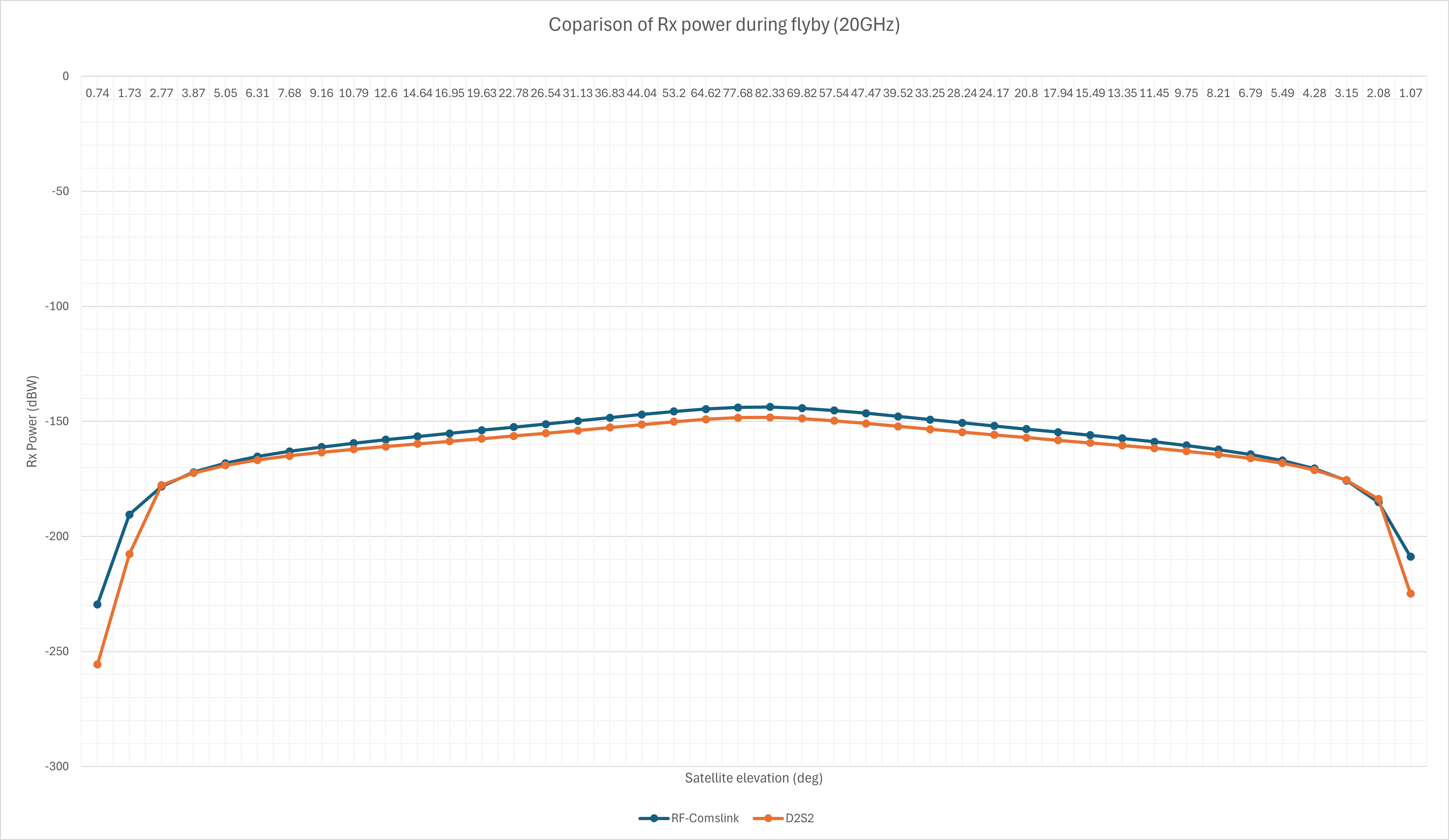 Figure 6: A comparison of Rx-Power of the ground station during a flyby analysed through RF-Comlink and D2S2