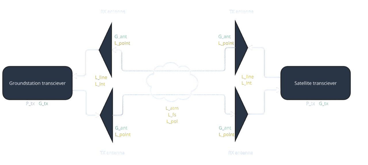 Figure 2: Overview of link budget setup, standard gains, and standard losses.